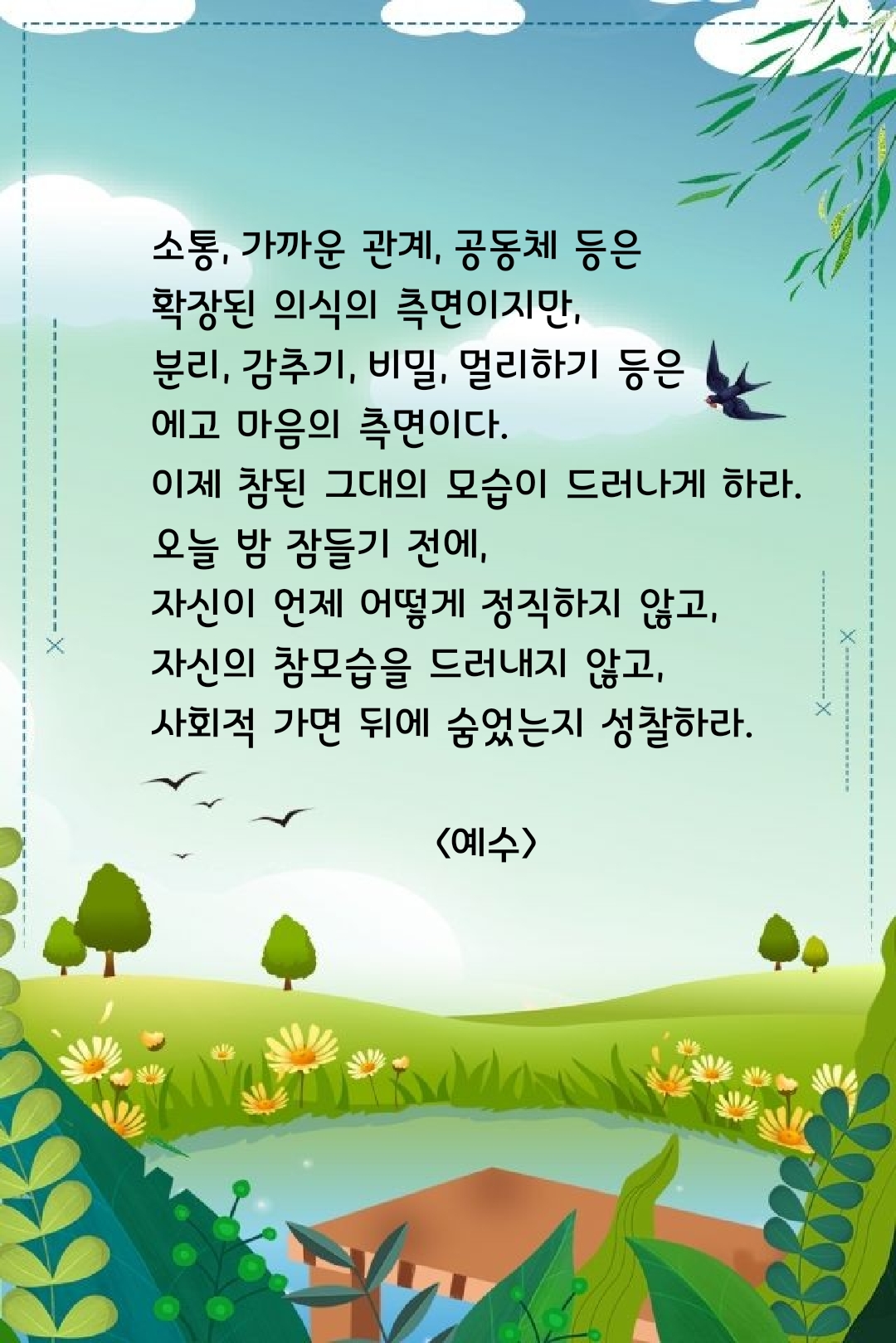 ¿À´Ã ¹ã Àáµé±â Àü¿¡, ÀÚ½ÅÀÌ ¾ðÁ¦ ¾î¶»°Ô Á¤Á÷ÇÏÁö ¾Ê°í, ÀÚ½ÅÀÇ Âü¸ð½ÀÀ» µå·¯³»Áö ¾Ê°í, »çȸÀû °¡¸é µÚ¿¡ ¼û¾ú´ÂÁö ¼ºÂûÇ϶ó.